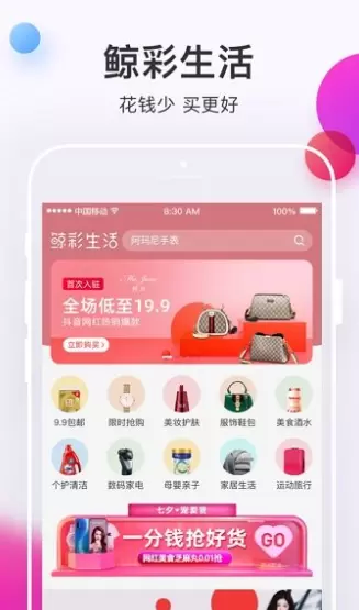 鲸彩生活是一款非常好用的网购商城,在上面聚集了海量的优质商品,种类非常的多样化,不管是日用百货还是时尚潮流服装,在这里应有尽有,你想买的商品在这里都能够找到哦,有喜欢...