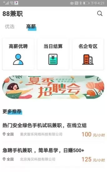 88兼职app是一款非常好用的手机兼职查询平台,使用起来非常的方便哦。可以随时随地的查到自己喜欢的兼职信息,上面的信息都是真实可靠的呢,平台的兼职非常的丰富,你喜欢的上面都...