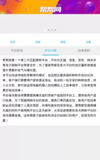 帮帮网是一款非常火爆的手赚软件,用户在这里无需注册即可轻松赚钱,第三方一键快捷登陆即可,在这里每天都有非常多的赚钱任务发布,主要是通过手机自动刷单赚钱,支持多个电商平...
