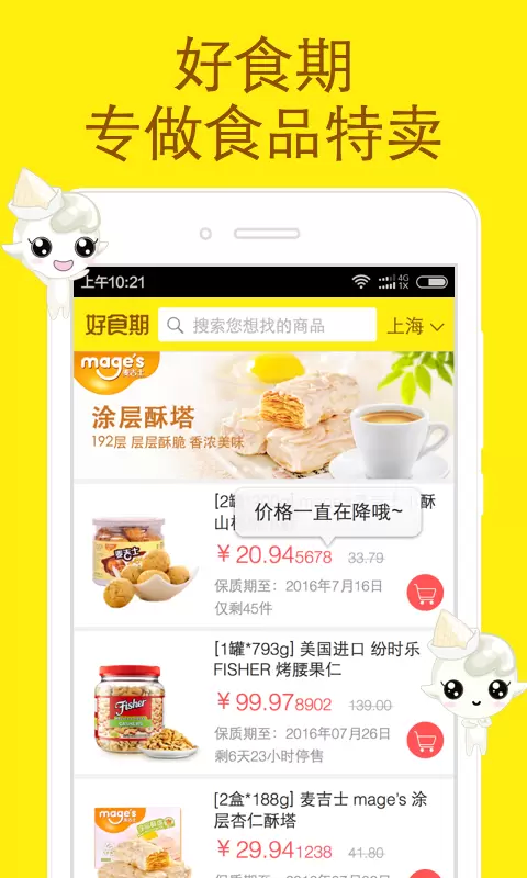 好食期app是一款专为零食打造的商城,平台网罗了全球知名品牌的各种零食,更有秒杀专场,支持多种支付方式支付,并且享受全场包邮服务,就算是足不出户都可以尝遍来自全球各地的美...