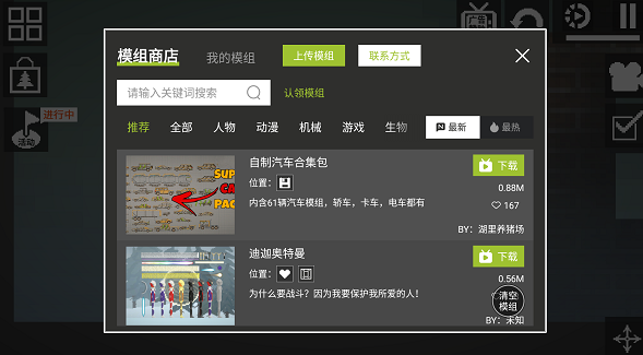 4、这里有不同的人物、武器、炸弹、刀剑、注射器、装甲等等资源供玩家们体验。