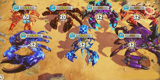 2、变强之路:通过获胜收集奇怪而美妙的螃蟹物种,升级并定制他们。