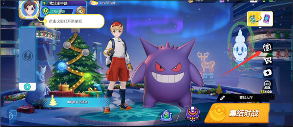 1、打开宝可梦大集结手游,进入后在游戏主界面,点击右侧第一个图标按钮;