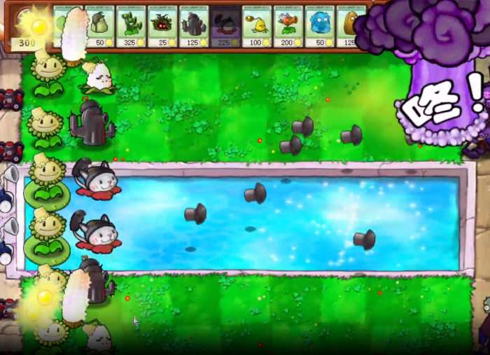 48、香蒲:能够攻击气球僵尸或任何—条路上的僵尸。