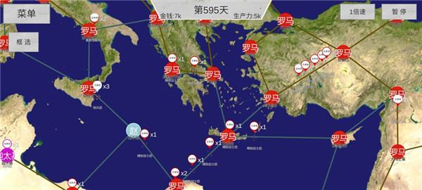 五、打秦。这个阶段秦已经打下罗马,这个时候要多面出击,不要让秦聚太多兵,四个方向。阿奎来压出击,北非出击,以地中海那个城市为调班,分上下两路出击。
