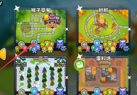 2、接着玩家需选择猴子草甸地图,然后玩家需点击简单等级;