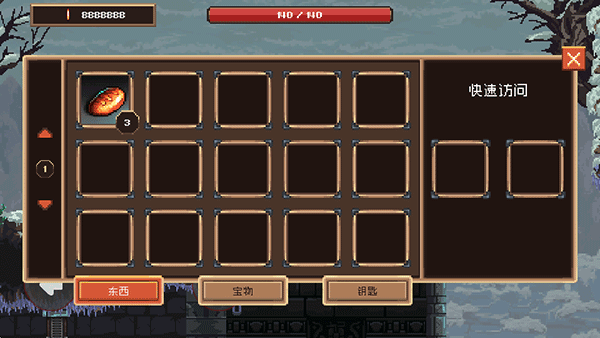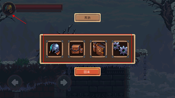 3、点击血条旁边的头盔会有背包栏和状态栏
