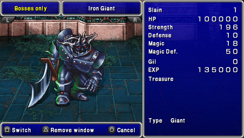 铁巨人,看看那HP就觉得自己矮了一大截,攻击也高达196.突破口可能就是那10的防御了。他的种族是巨人。给站在前排的人带巨人护手吧。当他收到魔法攻击时会用陨石反击,死之前也会用陨石。建议白魔法上升时去打。乖乖用物理攻击吧。