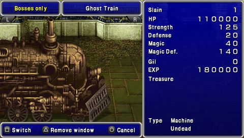 魔列车,(他是背后突袭,小心点),他通常会用神圣攻击,但他自己的弱点正好是圣(这里怎么做不解释)。需要小心的是丢轮子攻击,一般会直接把一个HP4000左右的人打残。但这是单体攻击,有时会丢2个轮子,复活是来得及的,在神圣反射下,他110000的HP也不过是个摆设而已。
