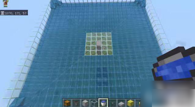 1、在Y坐标为128格的地方做一个5×5平台,上面放漏斗,这是收集的地方。