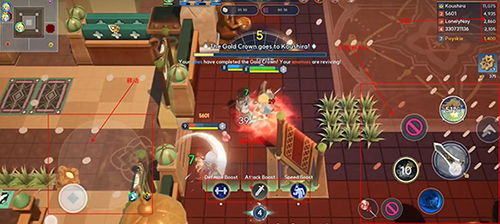 玩家在出门对战后,可以通过左边的轮盘控制英雄移动,通过右边的图标控制英雄释放技能和普攻。