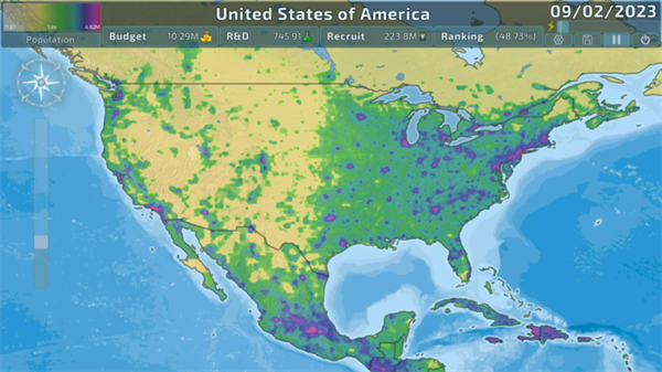 4.使用你国家的资源来维持你的研究和军事行动,但如果你花费太多,你的土地会变得贫瘠,你会在力量平衡中落后于你的对手。