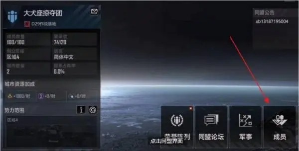 1、在无尽的拉格朗日中,退出同盟的方法是,首先进入同盟界面并点击成员。