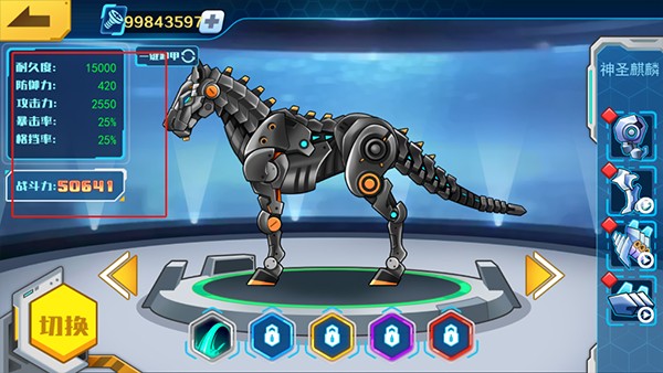 2、在机甲仓库里可以查看机甲的所有属性以及战斗力。