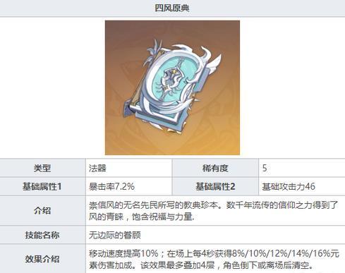 法器角色的顶配武器,这个没什么好说的,全元素增伤+移速,有的话用就是了