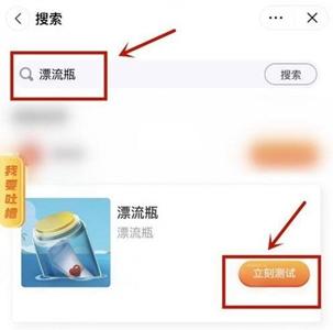 2、输入【漂流瓶】搜索,点击【漂流瓶】的【立即测试】按钮。