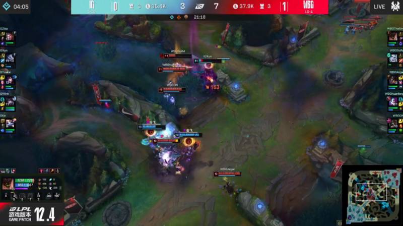 如果IG阵容不错,TheShy找不到放大时机,就拿自己做诱饵,勾引IG上当。比如第二局25:23,TheShy的石头人在河道拦住IG五人,引诱IG击杀自己,帮助队友拿到小龙,成功阻止IG的水龙魂。