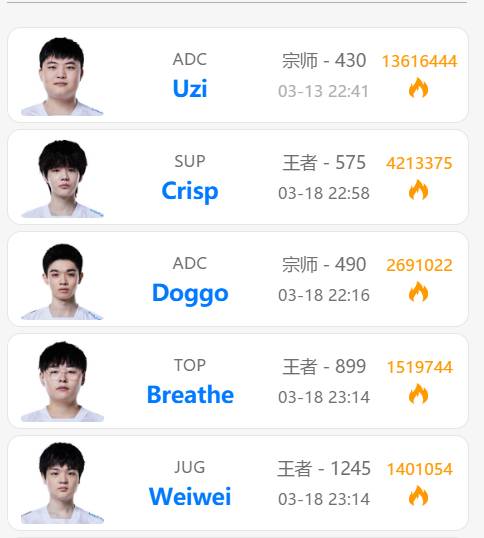 让粉丝倍感担忧的是,LPL常规赛收官战将至,小狗Uzi却暂别LOL韩服,可以看到撕少Crisp、Fofo、Doggo、Breathe等选手熬夜训练,而小狗Uzi已经五天没有登录韩服,上一次出现在LOL韩服,还要追溯到3月13日,粉丝不安也在情理之中。Doggo有望登场?答案是肯定的,冲击最强王者段位的小将Doggo或参加收官战,最终首发名单以BLG官宣为准。