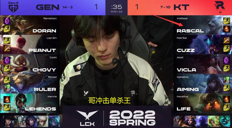 如果提到LCK新赛季的单杀王,那么Rascal哥绝对是实至名归,开赛至今单杀次数就已经追平LCK历史第二Canna,在对战老东家GEN的收官之战中,第二局使用的蛮王更是爆砍多兰塞恩,连续越塔单杀两次,单线通关帮助KT扳平了比分,单杀次数也成功超越Canna,距离LCK历史第一的传奇选手MaRin也仅差一次单杀就能追平,如果决胜局能够打出两次单杀,那么哥就能创造新纪录,成为LCK新一代的单杀王!