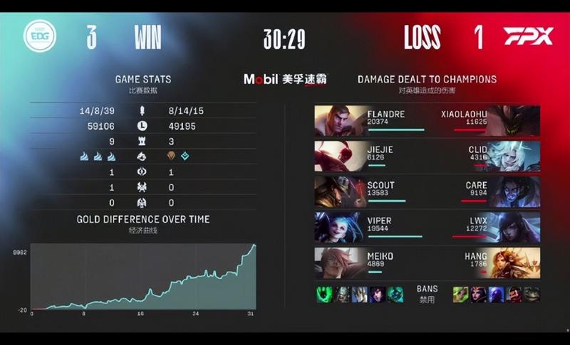 确实回顾今天的这场比赛EDG打得的确相当的不错,无论是中单Scout还是AD Viper可以说都打出了大腿级的表现,赛后德云色也在直播中表示今天这场比赛两队对实力差距还是太大了,特别是上路差距,感觉这场比赛打完EDG电直接充满后面不得了了,FPX还是差点意思没办法的。
