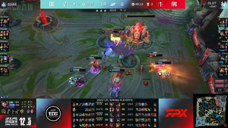 回顾本次的比赛EDG的表现可以说是相当的不错,上来第一局EDG就凭借着优秀的个人能力,成功在前期打出经济优势,中期EDG不断发力FPX毫无抵挡能力,最终仅用26分钟EDG便拿下第一局。不过很快FPX也在第二局的比赛中找回了状态,依靠Clid的关键抢大龙,FPX成功扳回一局。到了第三局EDG依靠Scout的优秀发挥再赢一局率先拿到赛点。