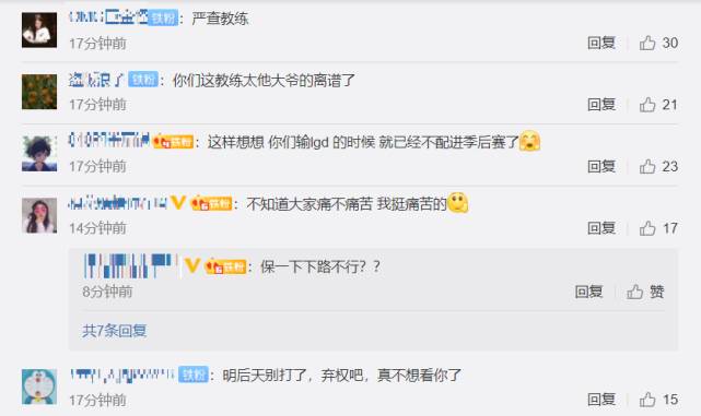 OMG官博下方的评论如下,首先被喷得最多的就是教练,因为第三局OMG这边的BP太被动了,节奏只能被FPX牵着走,OMG这边虽然抢了大龙,但是也没法拿下胜利。很多人都要求严查教练,BP太离谱了,生死局做出这种BP真的不让人理解。